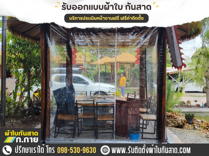 ผ้าใบใสของเรามีคุณสมบัติทนทานและดูสวยงาม เหมาะสำหรับการใช้งานทั้งในบ้านและร้านค้า ร้านอาหาร อาคารพาณิชย์ เพื่อป้องกันฝนและแสงแดดโดยไม่ลดทอนความสวยงามของสถานที่ หรือสไตล์ที่คุณชอบ